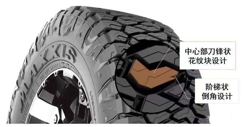 胎面采用中心部刀鋒狀花紋塊設計+花紋塊邊緣融入階梯狀倒角設計,提高輪胎的牽引力和耐磨性,延長行駛里程